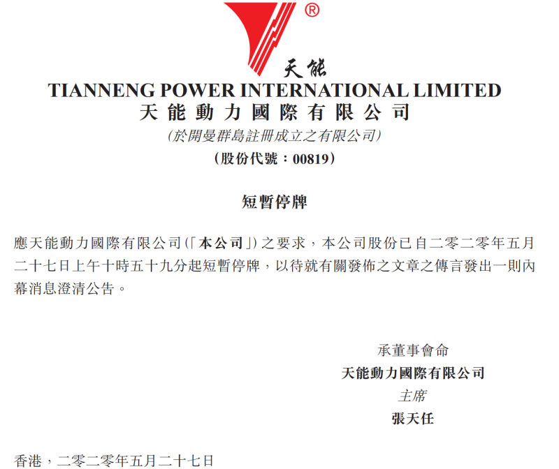 今日(5月27日),港股上市公司、“中國動力電池第一股”天能動力(00819,HK)遭遇做空。上午,公司在港交所臨時停牌,停牌前公司股價持續(xù)走低跌超7%,報8.2港元/股,最新市值92.39億港元。
