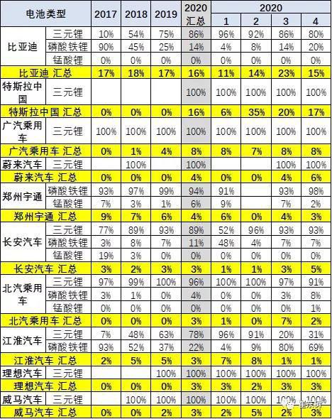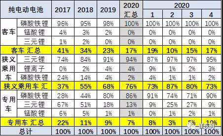 2020年的客車產(chǎn)品的磷酸鐵鋰占比100%,仍是相對保守。