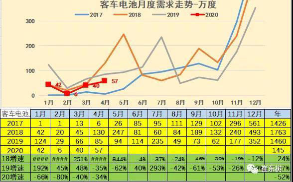 4月客車的電池需求較低,達到57萬度電,同比下降34%。