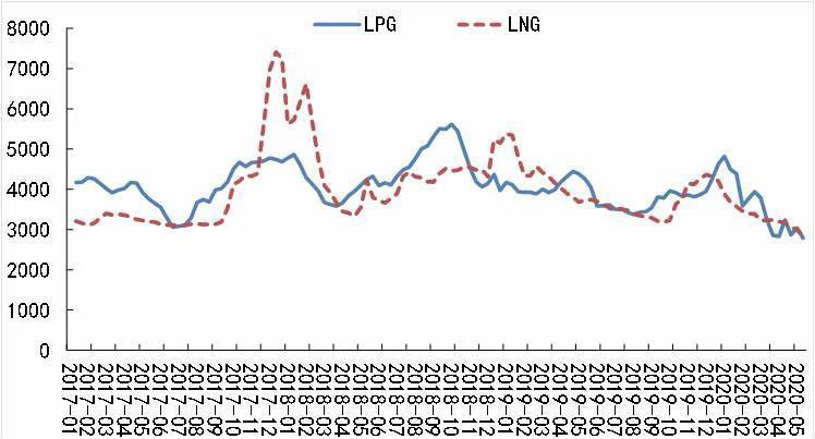2017年以來LPG及LNG價(jià)格(元/噸)