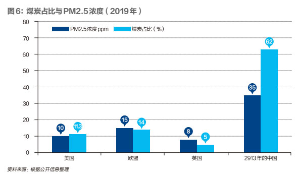2035年和2050年現(xiàn)代化國家初步建成和全面建成之后,中國的年均PM2.5的濃度也應(yīng)該至少降至25ppm和15ppm,才能與國家的發(fā)展水平、人民的愿望相稱,屆時(shí)煤炭消費(fèi)的占比也必須降低到35%和15%以下。