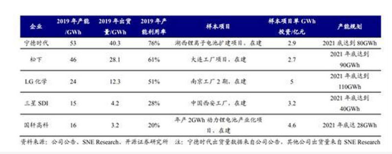 若對比全球各電池廠商產(chǎn)能利用率,此次定增對國軒高科顯得十分迫切。數(shù)據(jù)顯示,國軒高科2019年產(chǎn)能利用率僅為20%,而樣本項目單GWh投資/億元達到了4.6。