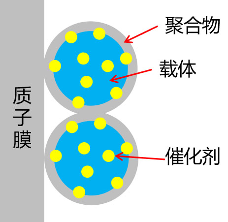 燃料電池催化層由催化劑及其載體、聚合物(ionomer)和孔隙組成。其中,聚合物通常包覆催化劑,主要作用為質(zhì)子傳導和結構粘接。PEFC的電化學反應既需要通過聚合物來傳導質(zhì)子,又需要氣體順利通過孔隙到達催化劑表面。因此,聚合物在催化層中的分散狀態(tài)異常重要。本文分享豐田中央研發(fā)實驗室公司關于PEFC催化劑的聚合物覆蓋率測算方法。