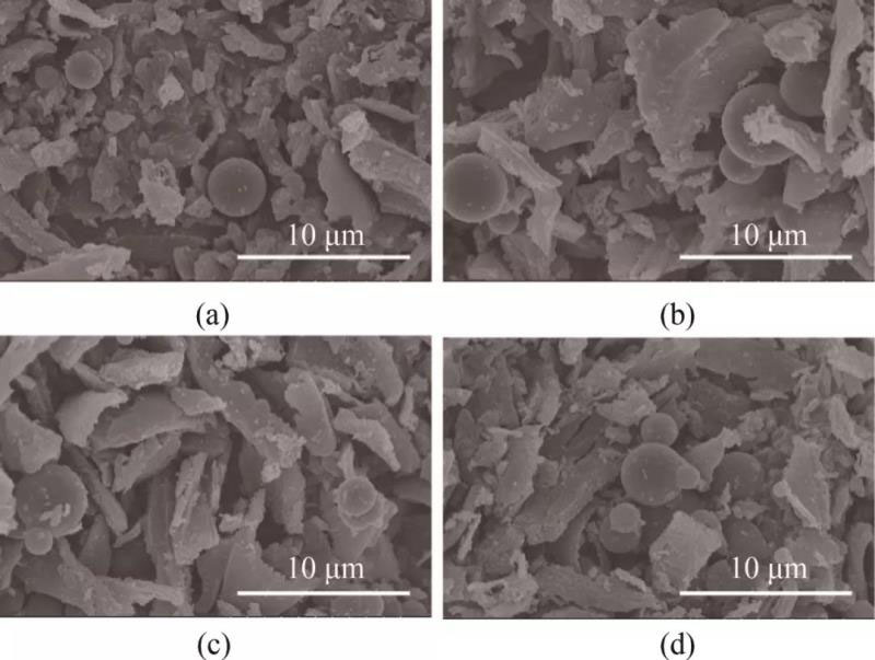 圖1炭化菱角殼基硬炭的SEM照片:(a) HT-900;(b) HT-1100;(c) HT-1300;(d) HT-1500
