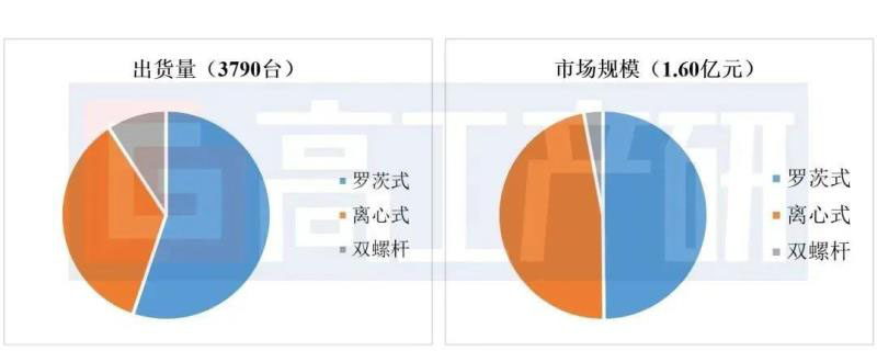 GGII調(diào)研數(shù)據(jù)顯示,離心式空壓機(jī)和羅茨式空壓機(jī)在市場(chǎng)份額上呈膠著狀態(tài),螺桿式空壓機(jī)所占市場(chǎng)份額也不少。