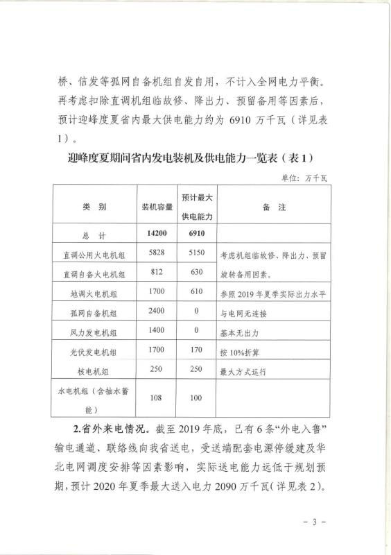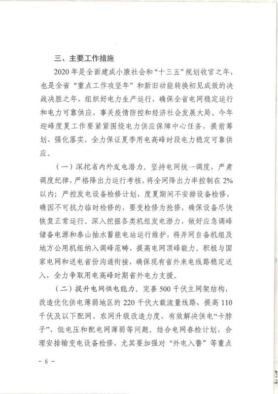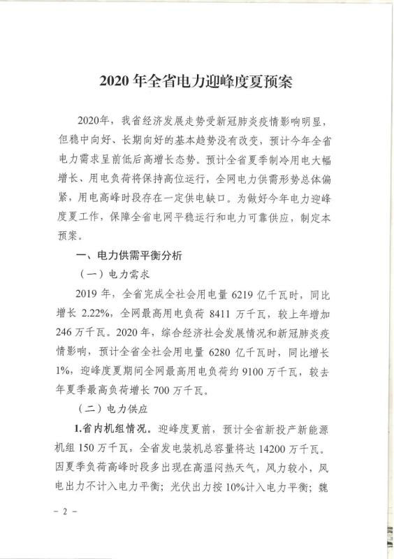 關(guān)于印發(fā)《2020年全省電力迎峰度夏預(yù)案》的通知