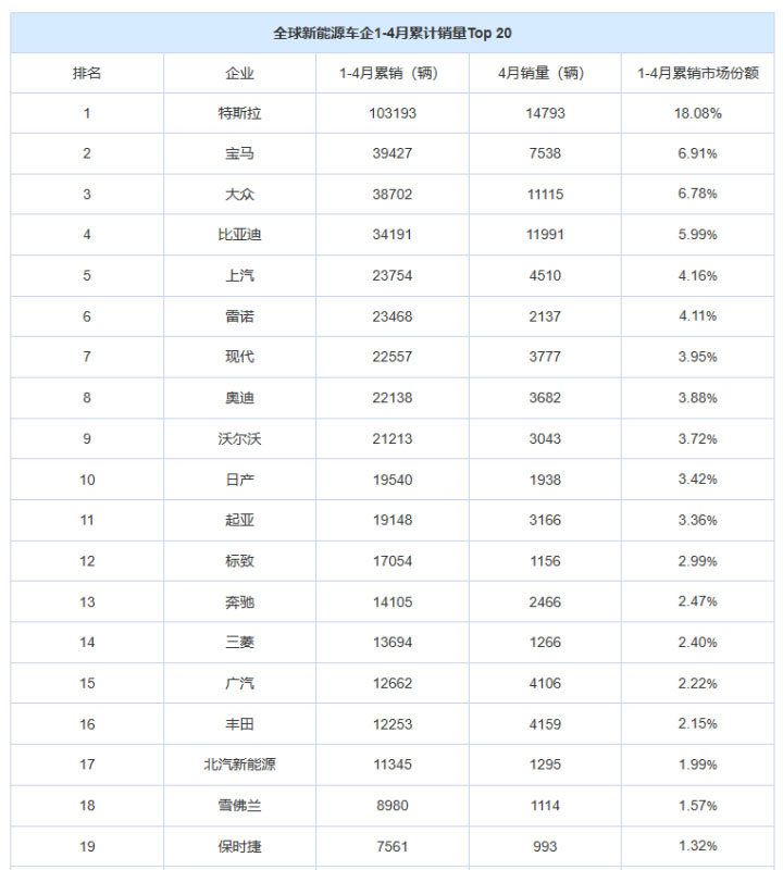 總結全文:就全球來看,新能源汽車雖是各企業(yè)布局的重點領域之一,但其銷量也受到了疫情等影響,1-4月以累銷57萬輛同比減少29%。從競爭格局看,傳統(tǒng)跨國車企如大眾、寶馬今年表現突出,比亞迪和北汽新能源此前常進前三強的中國選手,由于傳統(tǒng)跨國車企強勢上榜被擠出高位。