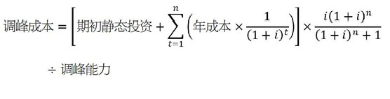 依據(jù)期初靜態(tài)投資、年成本、經(jīng)濟(jì)壽命、調(diào)峰能力等為參數(shù),測算和分析儲能等不同調(diào)峰資源的單位年調(diào)峰成本。計(jì)算公式為: