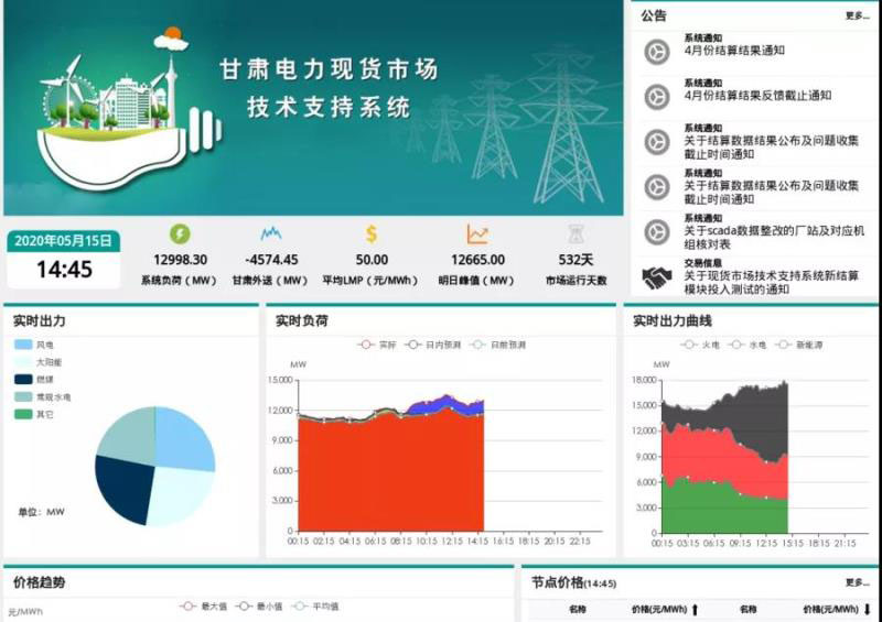 通過(guò)不斷升級(jí)和完善現(xiàn)貨市場(chǎng)技術(shù)支持系統(tǒng),積極開展現(xiàn)貨市場(chǎng)實(shí)時(shí)調(diào)度,甘肅電力現(xiàn)貨市場(chǎng)先后于2019年9月26日和11月22日完成兩次連續(xù)7天168小時(shí)結(jié)算試運(yùn)行,期間,電網(wǎng)運(yùn)行平穩(wěn)、技術(shù)支撐系統(tǒng)運(yùn)轉(zhuǎn)正常,出清結(jié)果合理,實(shí)現(xiàn)了新能源全額消納。