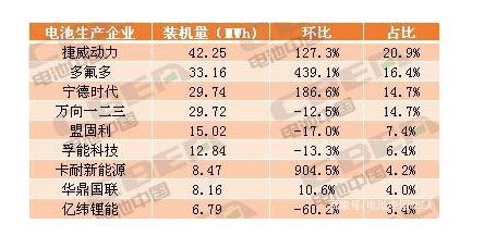 軟包電池裝機(jī)量增長(zhǎng)主要是受捷威動(dòng)力、多氟多、寧德時(shí)代和卡耐新能源等電池生產(chǎn)企業(yè)裝機(jī)量大幅增長(zhǎng)帶動(dòng)。