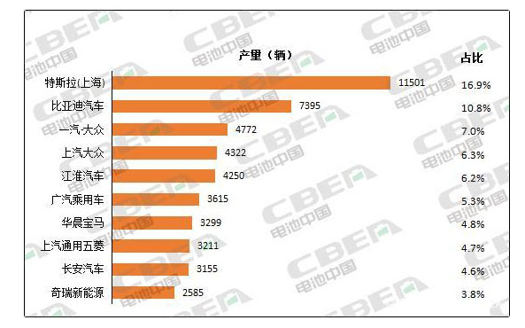值得注意的是,本月外資及合資車企發(fā)力,在5月新能源乘用車產(chǎn)量排名前十的車企中,外資及合資車企占半數(shù)。排名前十的車企依次為特斯拉(上海)、比亞迪汽車、一汽-大眾、上汽大眾、江淮汽車、廣汽乘用車、華晨寶馬、上汽通用五菱、長(zhǎng)安汽車、奇瑞新能源,產(chǎn)量合計(jì)占5月新能源乘用車產(chǎn)量的70.6%。其搭載的動(dòng)力電池基本是來(lái)自國(guó)內(nèi)裝機(jī)量排名靠前的幾家電池生產(chǎn)企業(yè)。