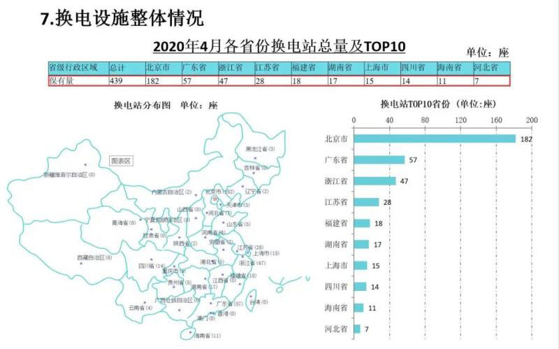 截至4月,全國共有換電站有439座,主要分布在一線城市及新能源汽車推廣較好的省市。除了北汽新能源、蔚來汽車外,浙江時空電動等車企以及國家電網(wǎng)、南方電網(wǎng)等能源企業(yè)均在進行布局。