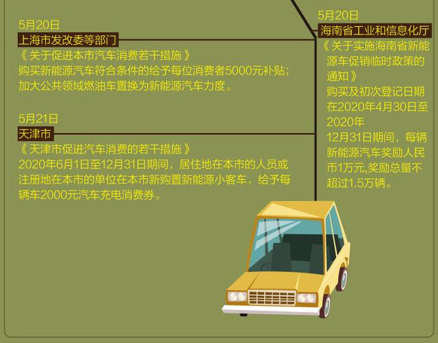 除了國家層面的關注,廣州、天津、上海等多地也都明確了針對新能源汽車具體的購車補貼金額。