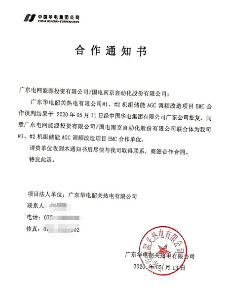 近日,國(guó)電南自新能源科技有限公司收到廣東華電韶關(guān)熱電有限公司“儲(chǔ)能AGC輔助調(diào)頻項(xiàng)目”中標(biāo)通知書,為韶關(guān)熱電公司2X350MW機(jī)組提供10MW/10MWh全套儲(chǔ)能系統(tǒng)與設(shè)備。