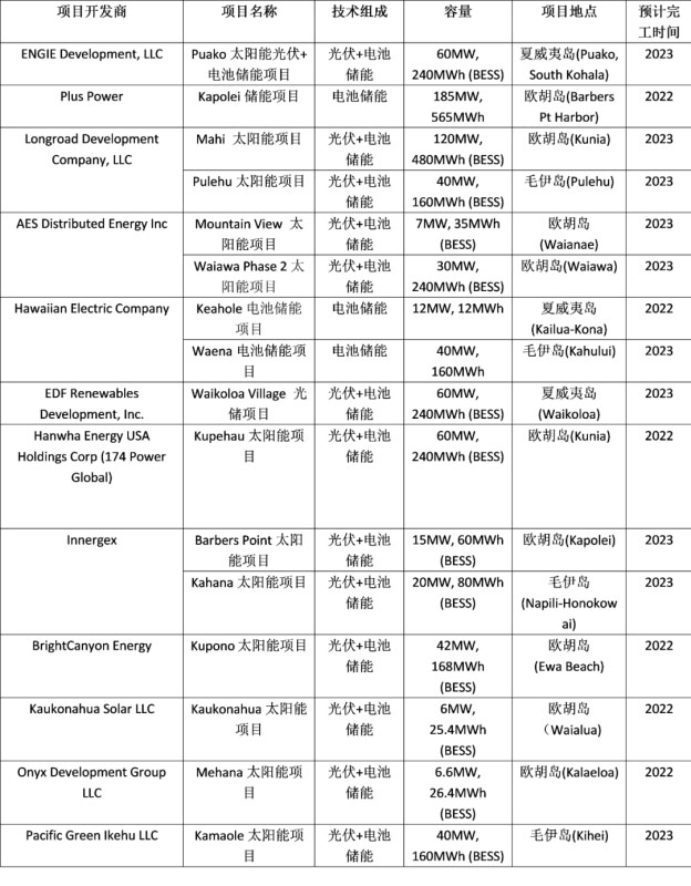 夏威夷電力公司在毛伊島和夏威夷島上承包了兩個獨立式儲能電站項目。公司預(yù)計全部16家可再生能源企業(yè)都將在2022年至2023年之間完成這些項目的建設(shè)。如果項目能按時竣工,那么到2025年,這16個項目將使夏威夷電力公司的可再生能源的裝機(jī)份額增加7個百分點,實現(xiàn)30%的目標(biāo)。