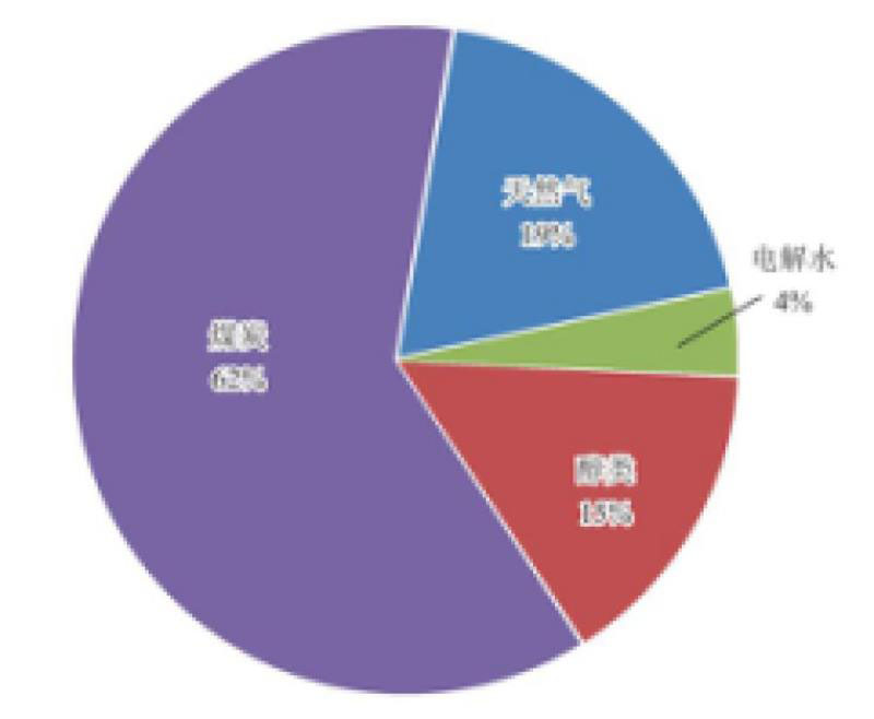 煤的氣化是指煤在高溫常壓或加壓條件下,與氣化劑反應(yīng)轉(zhuǎn)化成氣體產(chǎn)物。隨著煤制合成氣、煤制油產(chǎn)業(yè)的發(fā)展,煤制氫產(chǎn)量逐年增多,其規(guī)模較大、成本較低,制氫成本約 20元/kg。此外,化工產(chǎn)品(包括合成氨、甲醇等)生產(chǎn)過程中,從含氫弛放氣中回收純度大于 99%工業(yè)氫氣的裝置也日趨成熟與增多。