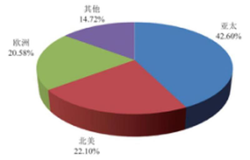 全球工業(yè)氫氣市場具有較強的地域性,已形成亞太、北美、歐洲三大區(qū)域版圖。化石資源是當前主要的制氫原料,其中煤氣化制氫發(fā)展?jié)摿薮骩5]。