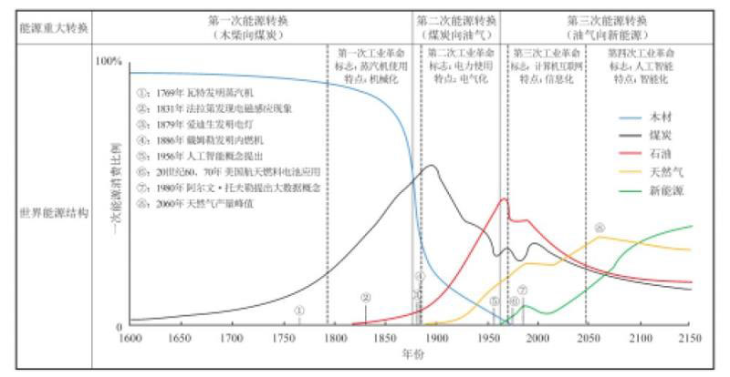 圖3 全球能源體系轉(zhuǎn)型示意圖(1850—2150年)