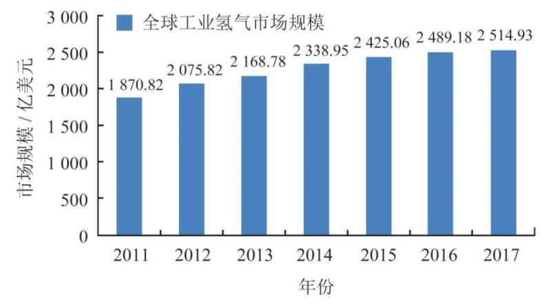 全球氫工業(yè)發(fā)展迅猛,市場規(guī)模從2011年的1870.82億美元增長到2017年的2514.93億美元,