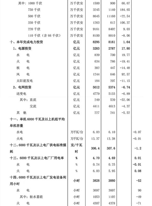 截至2019年底,全國全口徑發(fā)電裝機(jī)容量201006萬千瓦,比上年增長5.8%。其中,水電35804萬千瓦,比上年增長1.5%(抽水蓄能3029萬千瓦,比上年增長1.0%);火電118957萬千瓦,比上年增長4.0%(煤電104063萬千瓦,比上年增長3.2%;氣電9024萬千瓦,比上年增長7.7%);核電4874萬千瓦,比上年增長9.1%;并網(wǎng)風(fēng)電20915萬千瓦,比上年增長13.5%;并網(wǎng)太陽能發(fā)電20418萬千瓦,比上年增長17.1%。