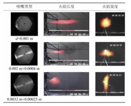 表1不同噴嘴類(lèi)型下的氫氣噴射火試驗(yàn)