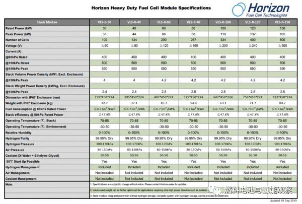 第一款發(fā)布的型號(hào)是150kW,燃料電池堆棧加上IP67外殼總重約為80kg。Horizon的目標(biāo)是利用性能優(yōu)勢(shì),在重量就是金錢的重型車輛燃料電池系統(tǒng)中建立基準(zhǔn)。