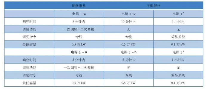 其次是響應(yīng)時(shí)間較快的二次調(diào)節(jié)服務(wù),它通過(guò)專用線在線接受中央調(diào)度中心調(diào)度。二次調(diào)節(jié)服務(wù)包括:接受負(fù)荷頻率控制LFC指令,要求晌應(yīng)時(shí)間5分鐘以內(nèi),持續(xù)時(shí)間30分鐘以上,以維持基準(zhǔn)頻率和并網(wǎng)潮流基準(zhǔn)值為目的;接受經(jīng)濟(jì)調(diào)度控制EDC指令,要求響應(yīng)時(shí)間5分鐘以內(nèi),持續(xù)時(shí)間30分鐘以上,以經(jīng)濟(jì)調(diào)度控制為目的。