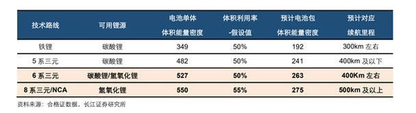 圖表 2 不同鋰源材料的電池能量密度及續(xù)航情況