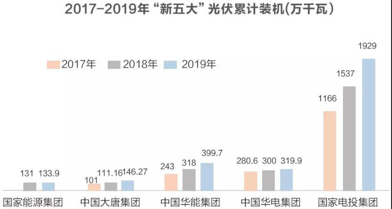 當然,在光伏產業(yè)發(fā)展上,五大集團也有例外者,過去國家電投在五大中體量最小,但卻是最有特色的一家。在其他企業(yè)著力發(fā)展風電的時候,國家電投卻風光并行,目前不僅是全球最大的光伏發(fā)電商,還在自身的電源結構調整中成效卓著——2019年,國家電投的清潔能源裝機占比第一次超過了50%,成為傳統(tǒng)發(fā)電企業(yè)中“最清潔的公司”。