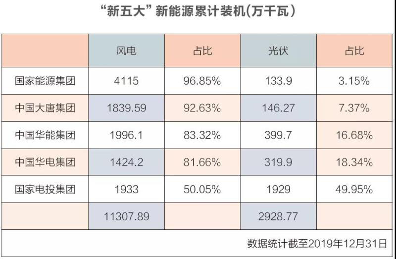 目前看來,“新五大”發(fā)電集團是能源清潔化轉型的主力軍,也是新能源發(fā)展的主導者。但是,在五大發(fā)電集團“爭風掠光”的過程中,風電、光伏的布局并不平衡。