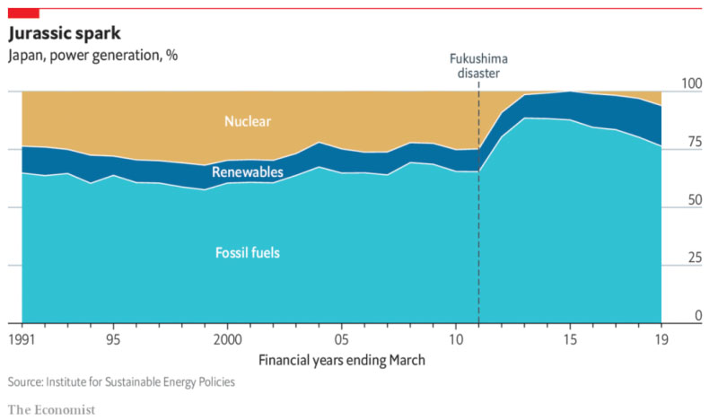 據(jù)《經(jīng)濟(jì)學(xué)人》報(bào)道,2011年福島核災(zāi)難發(fā)生后,日本對(duì)可再生能源的熱情高漲。當(dāng)時(shí)的日本首相菅直人宣布,日本從無到有制定新的能源戰(zhàn)略,大力提升可再生能源。然而,到目前為止,日本的低碳能源變革進(jìn)展緩慢。可再生能源發(fā)電占電力供應(yīng)的比例已從2010年的10%增長(zhǎng)到2018年的17%,但其中近一半來自既有的水電項(xiàng)目。核電站在福島事故發(fā)生前提供了全國(guó)四分之一以上的電力,大部分目前依然處于停運(yùn)狀態(tài)。但是關(guān)閉的核電站并沒有被風(fēng)電和太陽能所取代,而是被燃煤和天然氣電站所取代。按照現(xiàn)政府的規(guī)劃,核電到2030年至少提供20%的電力需求,煤炭在發(fā)電量中所占的份額有所增長(zhǎng)。日本政府已批準(zhǔn)在未來五年內(nèi)新建22座燃煤電廠的計(jì)劃。相比之下,日本可再生能源的目標(biāo)是22-24%,低于當(dāng)前全球平均水平,遠(yuǎn)低于許多歐洲國(guó)家。
