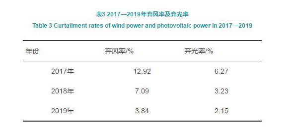 8)建立促進(jìn)清潔能源消納的市場(chǎng)化機(jī)制,持續(xù)推動(dòng)清潔能源清潔轉(zhuǎn)型發(fā)展。針對(duì)中國(guó)“三棄”問(wèn)題,積極開(kāi)展清潔能源省間交易、替代交易、富余可再生能源現(xiàn)貨交易等促進(jìn)清潔能源消納的市場(chǎng)化交易機(jī)制,有效提升了清潔能源消納水平,實(shí)現(xiàn)了棄電量和棄電率“雙降”的目標(biāo)。如表3所示,近年來(lái),棄風(fēng)率及棄光率不斷降低,有效地促進(jìn)了中國(guó)能源結(jié)構(gòu)清潔低碳轉(zhuǎn)型。