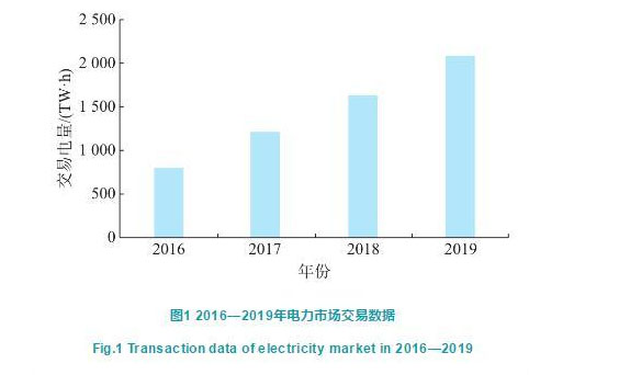 6)市場(chǎng)化交易規(guī)模不斷擴(kuò)大,改革紅利惠及廣大用戶。中國(guó)先后開(kāi)展了省、區(qū)域電力市場(chǎng)試點(diǎn),大用戶直接交易,發(fā)電權(quán)交易等一系列市場(chǎng)建設(shè)的探索與實(shí)踐。特別是新一輪電力體制改革以來(lái),發(fā)用電計(jì)劃有序放開(kāi),逐步建立了市場(chǎng)化的電量電價(jià)形成機(jī)制,市場(chǎng)化交易規(guī)模持續(xù)擴(kuò)大。如圖1所示,國(guó)家電網(wǎng)公司經(jīng)營(yíng)區(qū)域2019年市場(chǎng)交易電量已達(dá)到2 080 TW·h,并呈現(xiàn)繼續(xù)擴(kuò)大的趨勢(shì)。
