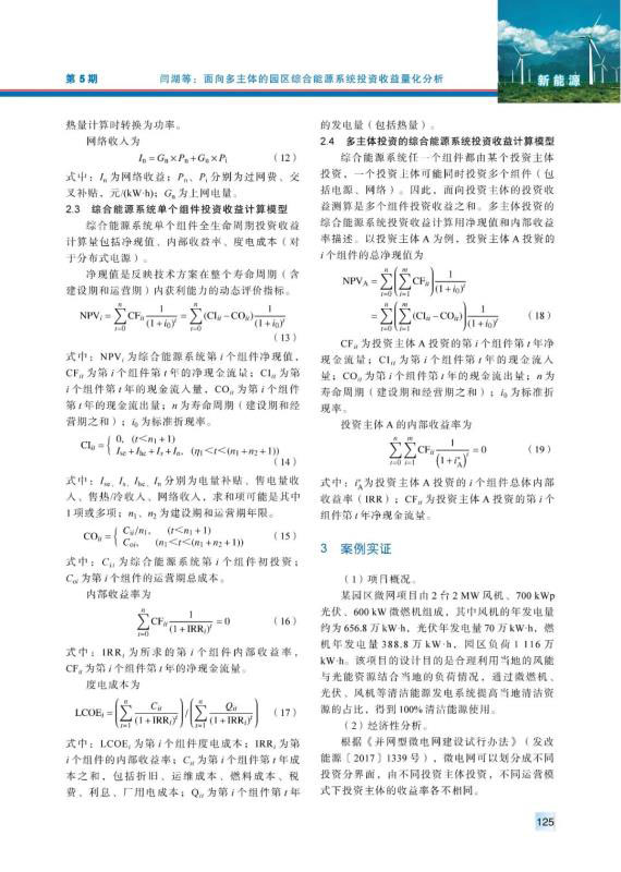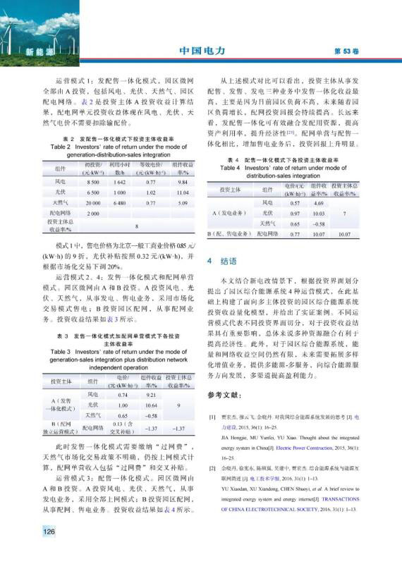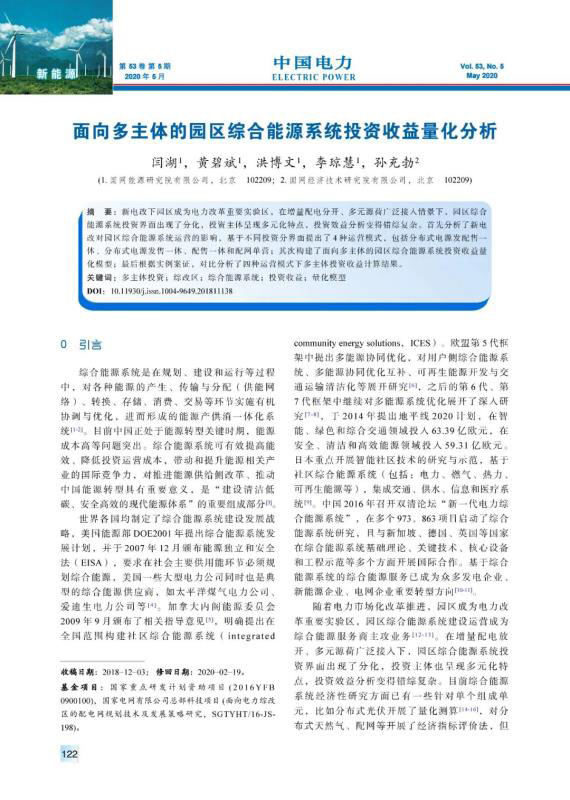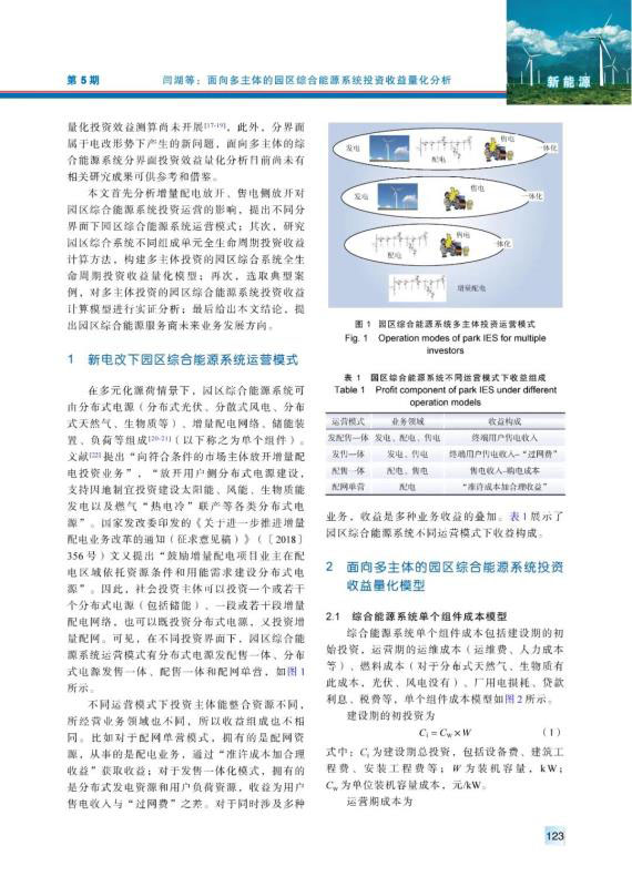 新電改下園區(qū)成為電力改革重要實驗區(qū),在增量配電分開、多元源荷廣泛接入情景下,園區(qū)綜合能源系統(tǒng)投資界面出現了分化,投資主體呈現多元化特點,投資效益分析變得錯綜復雜。首先分析了新電改對園區(qū)綜合能源系統(tǒng)運營的影響,基于不同投資分界面提出了4種運營模式,包括分布式電源發(fā)配售一體、分布式電源發(fā)售一體、配售一體和配網單營;其次構建了面向多主體的園區(qū)綜合能源系統(tǒng)投資收益量化模型,最后根據實例案證,對比分析了四種運營模式下多主體投資收益計算結果。
