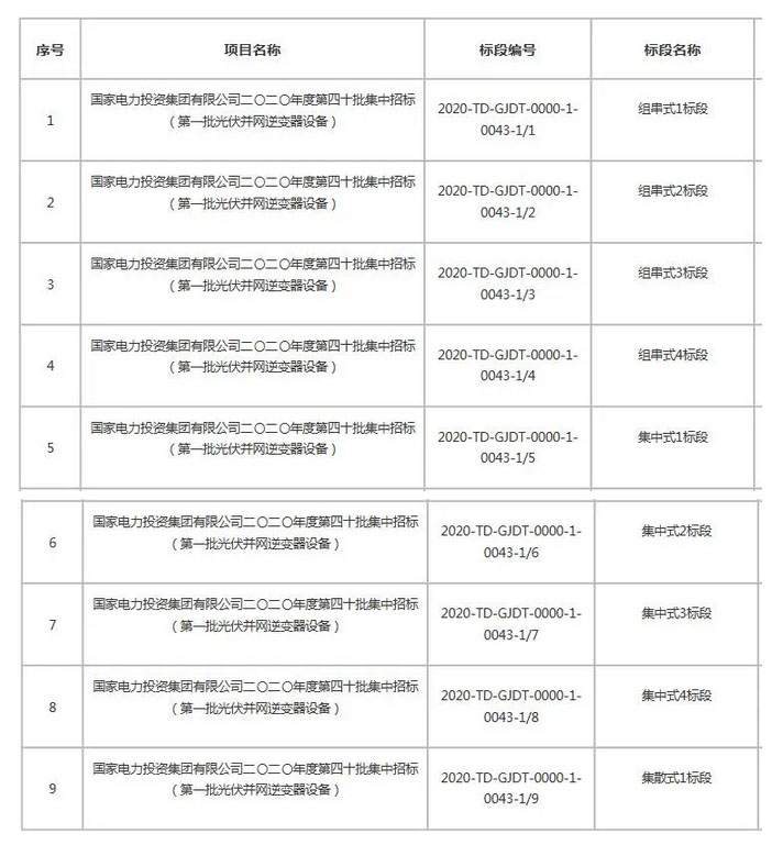 6月24日,國家電力投資集團(tuán)有限公司(簡稱“國家電投”)發(fā)布二〇二〇年度第三十九批集中招標(biāo)(第一批光伏電池組件設(shè)備)招標(biāo)公告、二〇二〇年度第四十批集中招標(biāo)(第一批光伏并網(wǎng)逆變器設(shè)備)招標(biāo)公告。