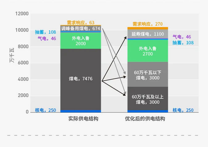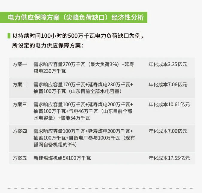 《報告》指出,“十四五”期間如果為滿足短時尖峰負荷缺口,而大舉新建耗資數(shù)十億的燃煤電廠,是極不經(jīng)濟的。從中國整體尖峰負荷需求來看,若未來仍存在相當于2018年的電力缺口規(guī)模,即各省電力缺口總和2454萬千瓦,建議選擇“需求響應(yīng)+延壽煤電”的最優(yōu)供應(yīng)方式來滿足尖峰負荷。而如果依靠新建更多煤電項目來填補短期缺口,將造成約每年70.2億元的投資浪費;按照煤電機組全壽命周期(30年)的時間范圍看,共計將產(chǎn)生2106億元的投資浪費。