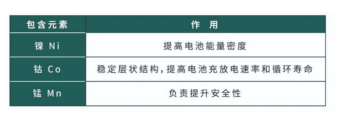 三元常見的表達(dá)方式還會(huì)在NCM后加一串?dāng)?shù)字,例如NCM523、NCM811等,代表了鎳鈷錳在材料中的大概比例。