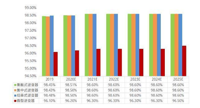 圖17:2019-2025年不同類型逆變器中國(guó)效率變化趨勢(shì)資料