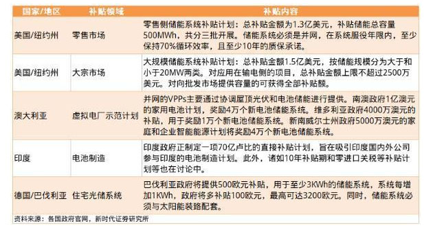 表3: 2019年海外光伏儲(chǔ)能補(bǔ)貼政策