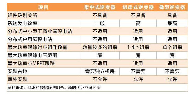 表1: 集中式、組串式、微型三種逆變器綜合比較