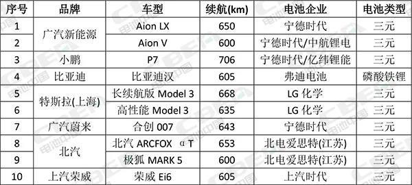 國內(nèi)續(xù)航600km(含)以上車型及配套電池生產(chǎn)企業(yè)統(tǒng)計(jì)