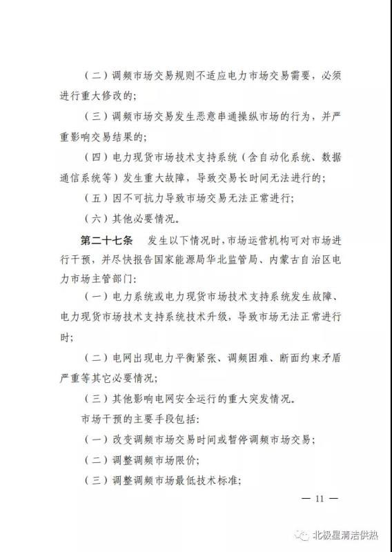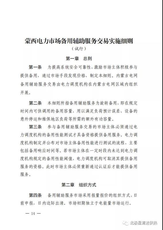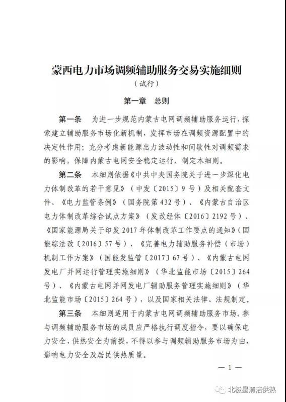 蒙西電力市場調(diào)頻、備用輔助服務(wù)交易實(shí)施細(xì)則(試行)