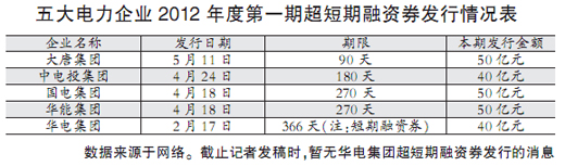 事實(shí)上,在今年3月15日超短期融資發(fā)行主體放寬至五大發(fā)電集團(tuán)后,華能便成為首家獲得注冊額度并批準(zhǔn)發(fā)行的企業(yè)。4月18日,中國華能集團(tuán)公司成功發(fā)行了其2012年度第一期50億元超短期融資券。該超短期融資券期限270天,票面年利率4.18%,綜合年成本率4.58%,比同期銀行貸款基準(zhǔn)利率低1.98個(gè)百分點(diǎn)。