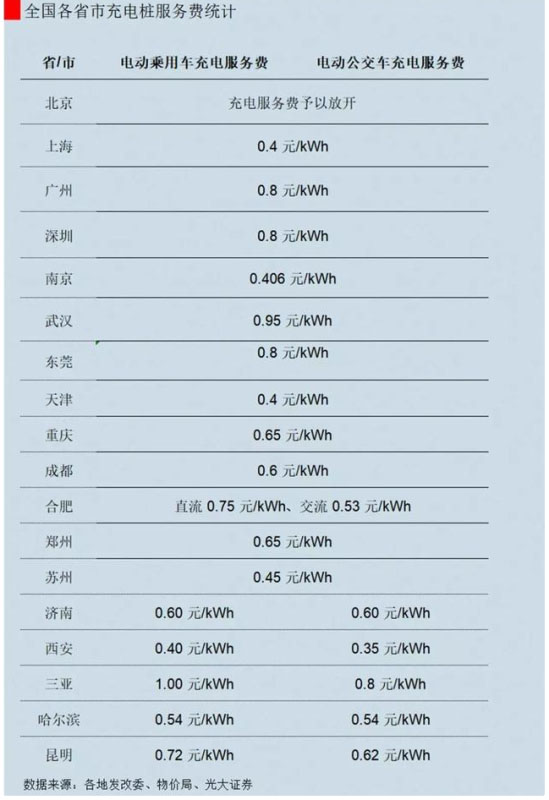利用率提不上去是一一塊心病,服務(wù)費運營商們收的也不自由。在服務(wù)費這塊,由各地政府和發(fā)改委自行制定,上限定的死死的。從目前多省市的公告和政策來看,充電服務(wù)費有持續(xù)下降的趨勢。