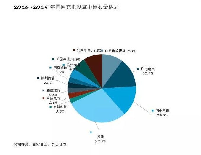 國家電網(wǎng)是國內(nèi)最大的充電樁公開招標企業(yè),也是最早入行的建設(shè)運營方。近4年來國網(wǎng)每年進行三批次的充電樁招標,統(tǒng)計下來中標數(shù)量前三的是國電南瑞、許繼電氣和山東魯能,清一色國網(wǎng)嫡系。