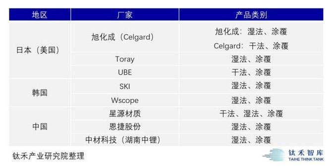 全球鋰電池隔膜主要企業(yè)