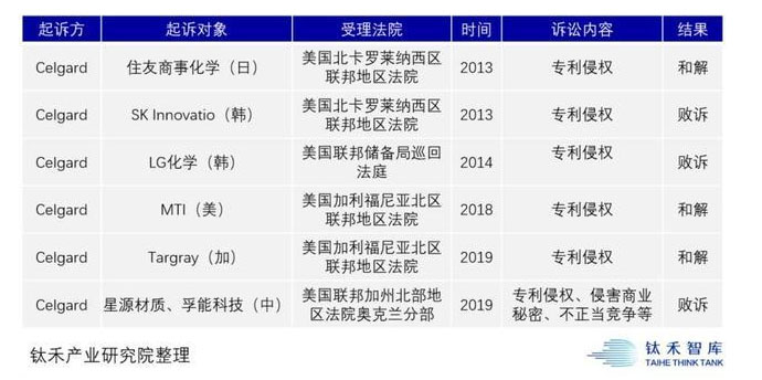 這家2015年被日本旭化成收購(gòu)的美國(guó)公司,現(xiàn)在的主業(yè)幾乎變成了靠滿世界打官司為生——從2013年開(kāi)始,LG化學(xué)、SK、住友、MTI、Targray……但凡有點(diǎn)影響力的隔膜企業(yè),半數(shù)都上了Celgard的起訴名單。但尷尬的是,Celgard大多以敗訴或和解告終。