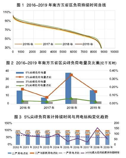 四是單次持續(xù)時間短、出現(xiàn)頻次低。2016-2019年,南方五?。▍^(qū))5%尖峰負(fù)荷單次持續(xù)時間最長為3-6小時,全年出現(xiàn)頻次10-40次;3%尖峰負(fù)荷單次持續(xù)時間最長為2-6小時,全年出現(xiàn)頻次6-25次。