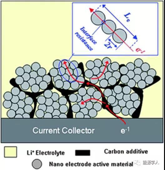 與其他材料組合以形成復(fù)合材料也是增強(qiáng)LSTBO性能的常用方法。如圖7所示,在理想情況下,借助粘合劑或其他添加劑,導(dǎo)電炭黑可以與Li4Ti5O12充分混合,從而可以在活性材料體相中提供連續(xù)的電子通道,有益于電子傳輸。