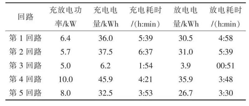 儲能電站運行效果評價包括充放電能力、能效水平和設備運行狀態(tài)3 個方面[13],其中,充放電能力評價包括儲能電站實際可充放電功率、實際可放電量以及儲能單元能量保持率指標。經(jīng)過對電站各回路的充放電能力、運行效果、切換時間和電能質(zhì)量的數(shù)據(jù)分析,得出以不同類型、結構、時期的退役動力電池為儲能載體的異構兼容電站符合儲能電站的技術要求。